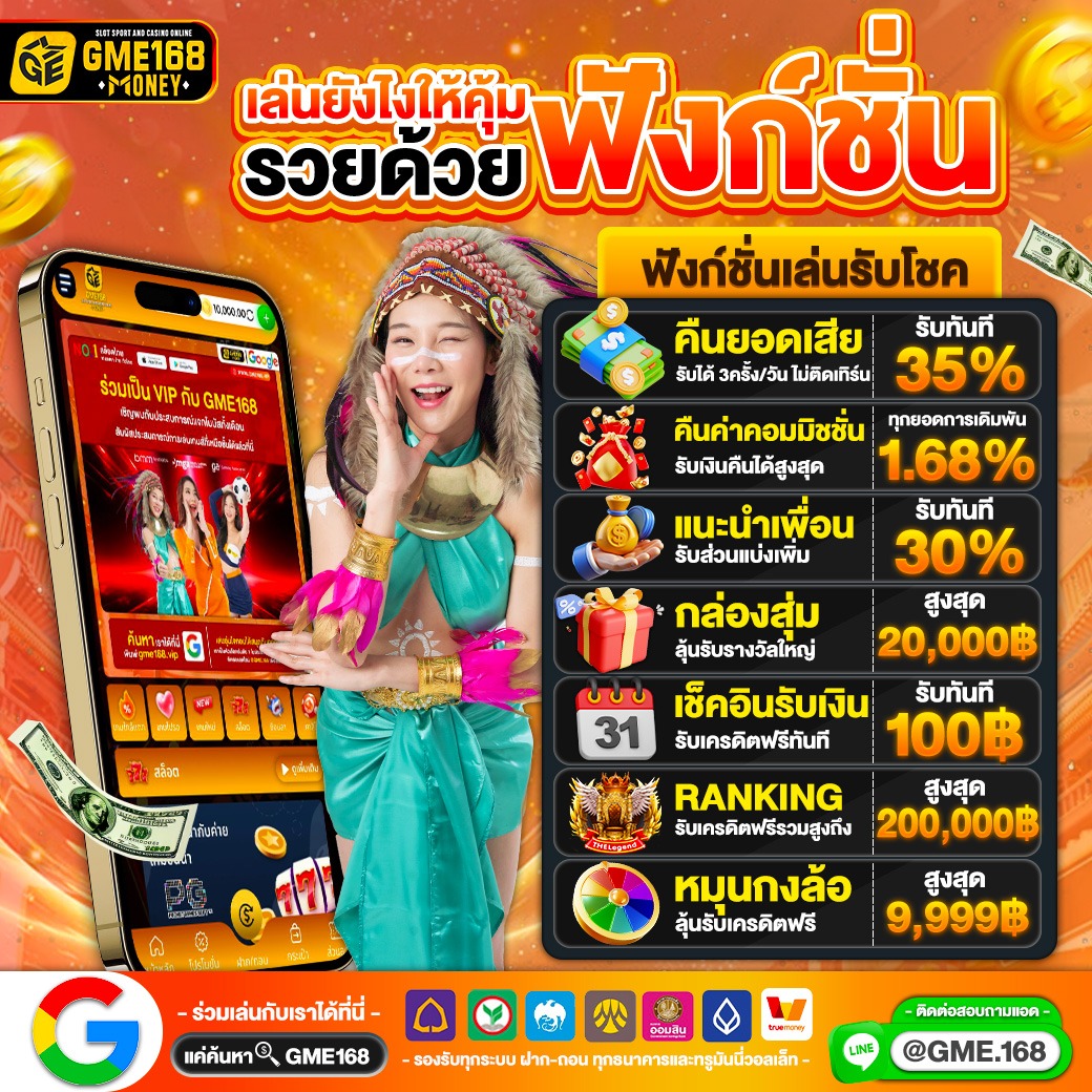 GME168 เว็บพนันออนไลน์ครบวงจร ให้บริการเกมพนันหลากหลายรูปแบบ ทั้งคาสิโนสด สล็อต กีฬา และเกมไพ่ต่างๆ ระบบฝาก-ถอนอัตโนมัติรวดเร็วภายใน 30 วินาที รองรับธนาคารชั้นนำทุกธนาคาร ใช้งานง่ายผ่านมือถือทุกระบบ มีโปรโมชั่นเด่นเช่น เครดิตฟรีสำหรับสมาชิกใหม่ โบนัสเติมเงิน และคืนยอดเสีย ทีมงานดูแล 24 ชั่วโมง ระบบเว็บไซต์มีความปลอดภัยสูง ใช้เทคโนโลยีเข้ารหัสทันสมัย เหมาะสำหรับนักพนันที่ต้องการความสะดวกสบายในการเดิมพันออนไลน์